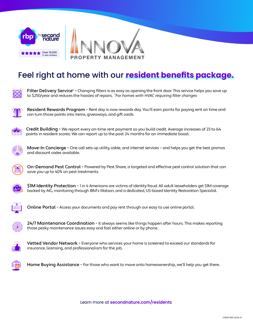 That’s why we provide a Resident Benefits Package (RBP) to address common headaches for our